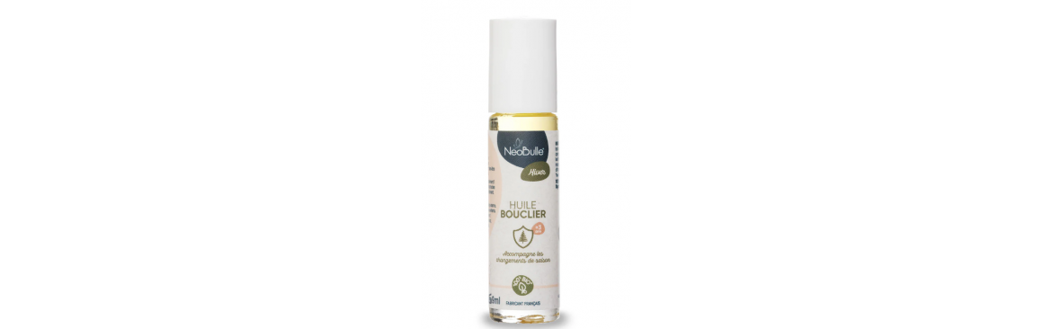 Alliée incontournable dès les premiers froids, l'huile Bio Bouclier est une huile aromatique tonifiante qui apporte du bien-être à chaque changement de saison !